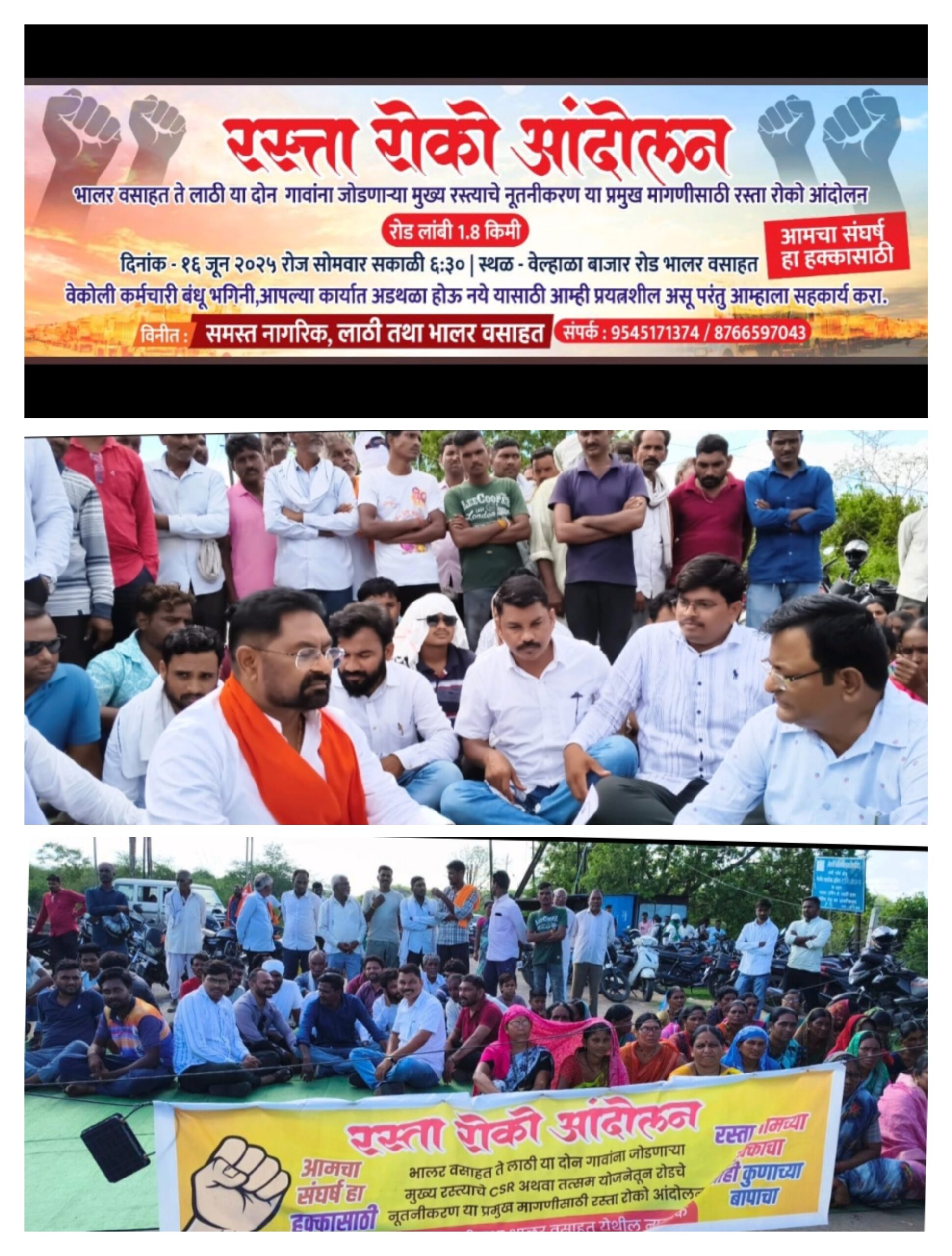 भालर ते लाठी रस्त्याच्या नूतनीकरणासाठी WCL विरोधात जोरदार आंदोलन
